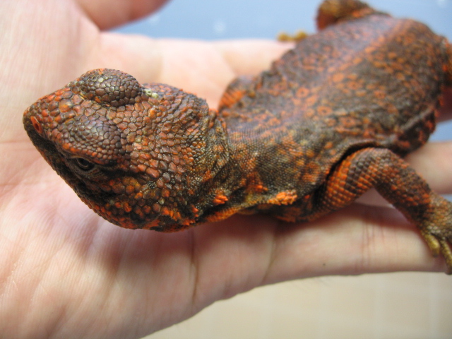 | 分布 | アルジェリア南部、マリとニジェールの一部 | 全身が、黄色または赤っぽい色がでてとてもきれいなアガマです |